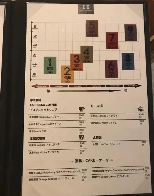 Reducing the barriers for customers when placing an order is crucial, and the design of the menu and proper guidance from the barista are especially important. There’s a Japanese coffee chain shop in Shanghai’s Bund area where the menu features a matrix as a guide for ordering. It took me some time to roughly understand this matrix and eventually ordered a No. 3 coffee. No. 3 is positioned in the middle of the roasting level axis, so I expected a fairly balanced flavor. But when the coffee arrived, it only had a very slight acidity. Upon closer examination of the menu, I realized that the zero point on the horizontal axis starts from medium roast. It turns out this coffee shop follows the traditional Japanese style and does not offer any light or light-medium roasts. In contrast, ordering at another nearby coffee shop (Arabica%) is much easier. Compared to the former, which offers 9 options, Arabica% provides only 2 options after the customer chooses brewing method: a regular medium-dark roast and a single-origin light-medium roast.
